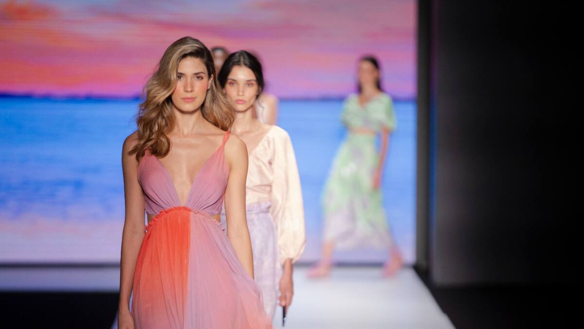 Con un atardecer frente al mar Caribe proyectado en una pantalla de fondo, una a una empezaron a desfilar las modelos sobre la pasarela de la feria de moda más importante de Colombia, que este año se reactivó para fortuna de la industria.