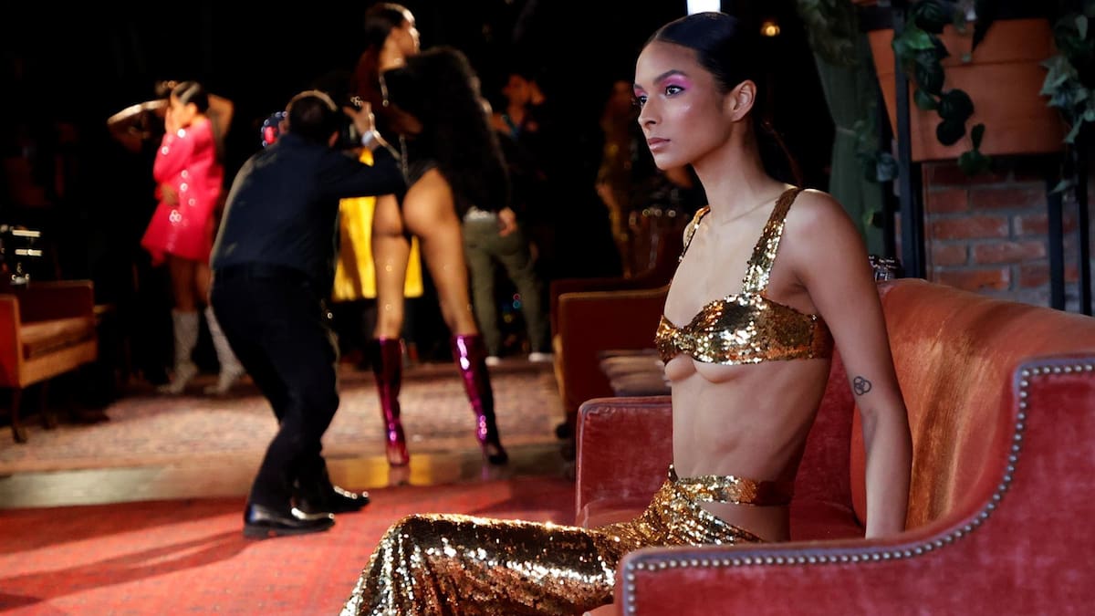 Bronx + Banco, obra de la diseñadora rusa criada en Australia, Natalie De'Banco, eligió el hotel Bowery para mostrar una atrevida colección que evocaba el sueño de 'una noche en París', con conjuntos que abrazaban el cuerpo como una segunda piel, recubiertos de apliques brillantes y pedrería.
