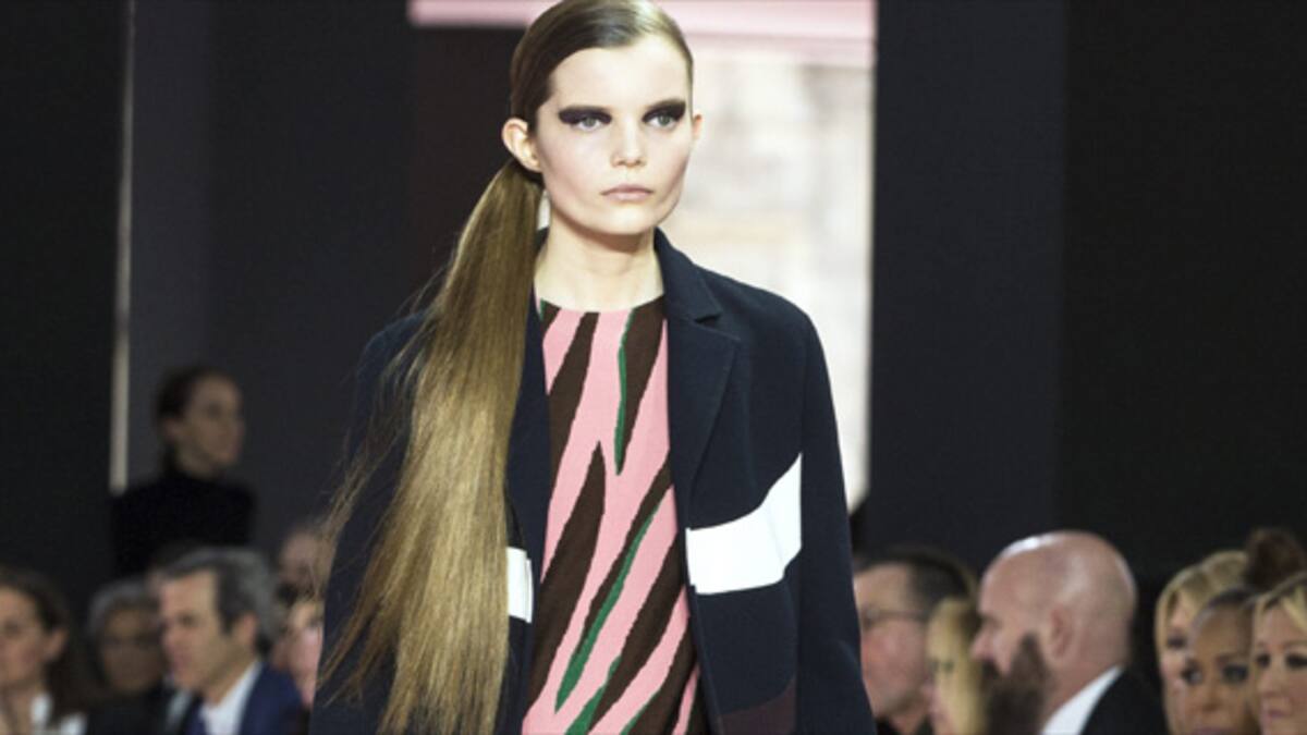El modisto belga Raf Simons creó hoy nuevas figuras a partir de estampados animales, en la colección de prêt-à-porter para el próximo otoño-invierno de Christian Dior, que utilizó tanto el tweed como el charol y las pieles.