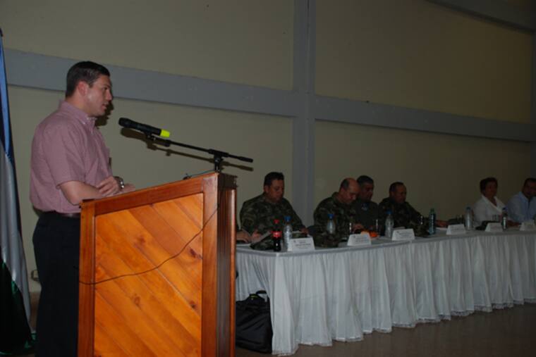 En el auditorio del hospital San Jerónimo de Montería, el Ministro de defensa, Juan Carlos Pinzón, conoce de viva voz de las autoridades de este Departamento, la crítica situación de orden público que azota a la región y que se traduce en más de 420 asesinatos selectivos en lo que va de este año.