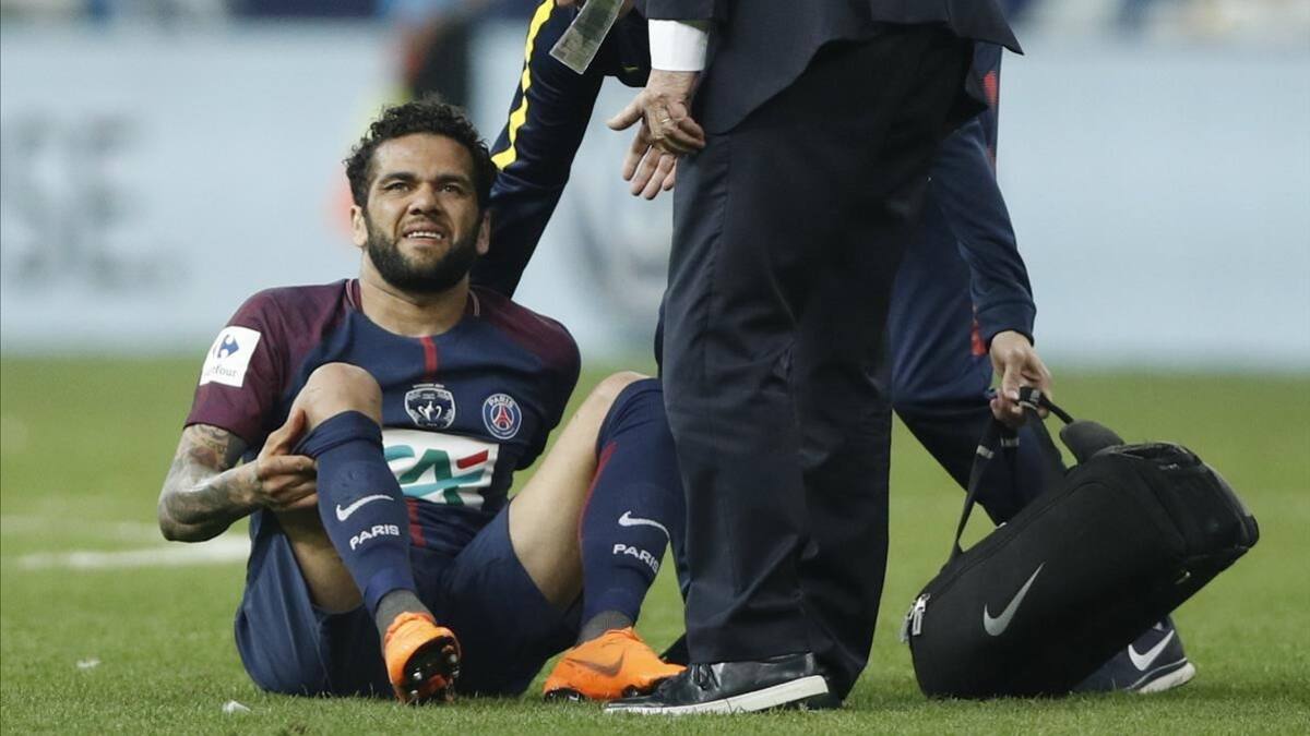 Alves sufre una desinserción en el ligamento cruzado anterior de la rodilla derecha que le obligará a pasar por el quirófano, según la información procedente de varios medios brasileño.