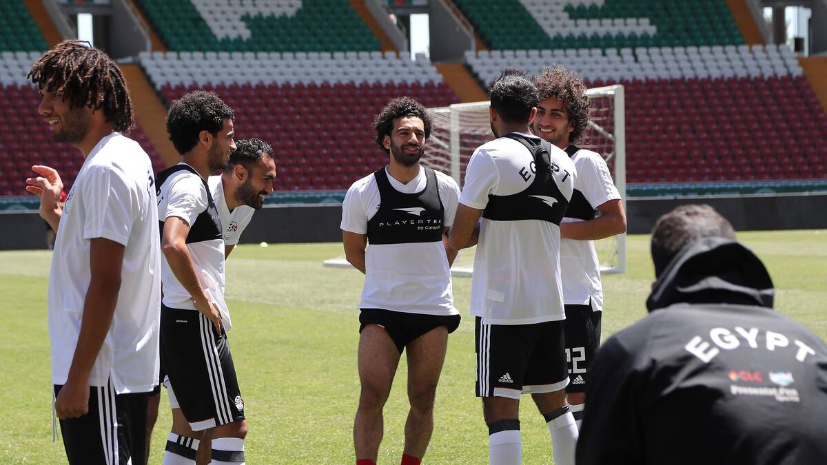 El astro del Liverpool estuvo corriendo y haciendo ejercicios con el balón junto a sus compañeros en el campo de entrenamiento de los 'Faraones' durante la Copa del Mundo, donde el equipo norteafricano debutará el viernes frente a Uruguay por el Grupo A en Ekaterimburgo a las 12H00 GMT.