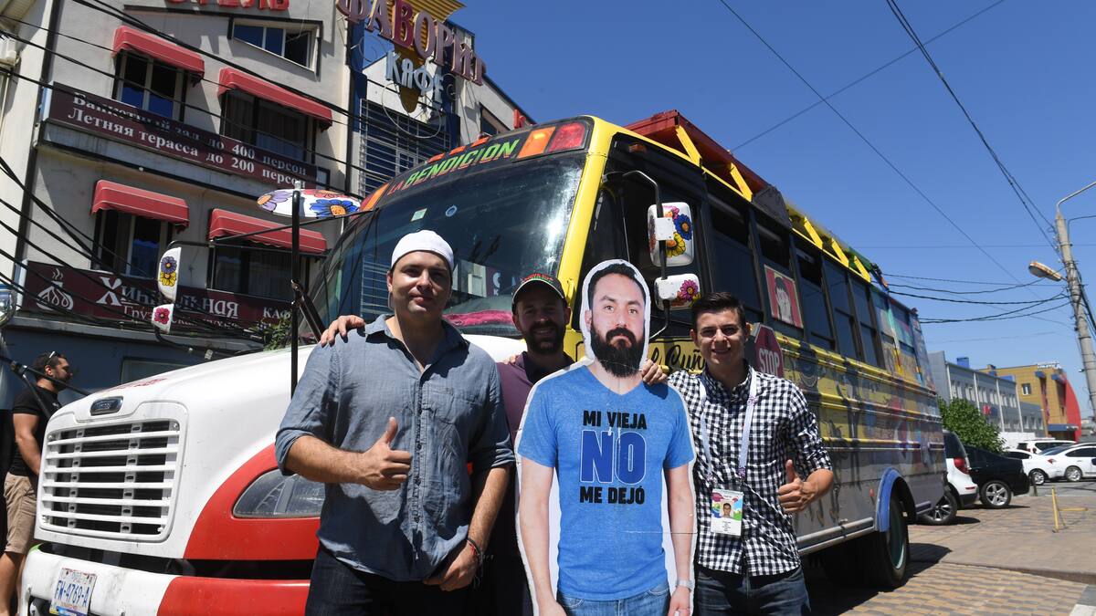 Javier 'está en todos lados, en los bares, en los sitios turísticos, ha bebido cervezas. A todos lados donde vamos, nos piden ‘la foto, la foto’, y todos siempre nos reciben con mucha alegría', explica Daniel, uno de los nueve ocupantes del autobús bautizado ‘La Bendición’.