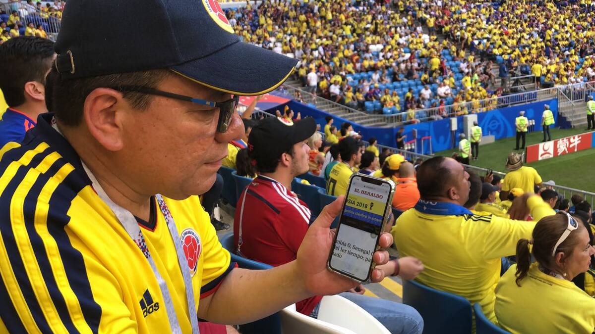 Decenas de hinchas de la ‘Tricolor’ se tomaron desde temprano las afueras del estadio Cosmos Arena, donde Colombia se enfrentará a Senegal en un partido definitivo en su clasificación. Los nacionales llegaron vestidos con banderas, sombreros y máscaras de marimonda para alentar al onceno tricolor. Un Carnaval como si fuera en el Metropolitano.