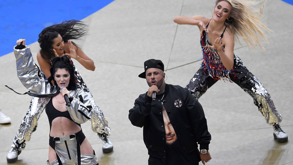 Nicky Jam–quien salió con una camiseta que tenía estampado el rostro de su amigo J Balvin– Will Smith y Era Istrefi fueron los encargados de poner la música en el acto de despedida de la Copa del Mundo.