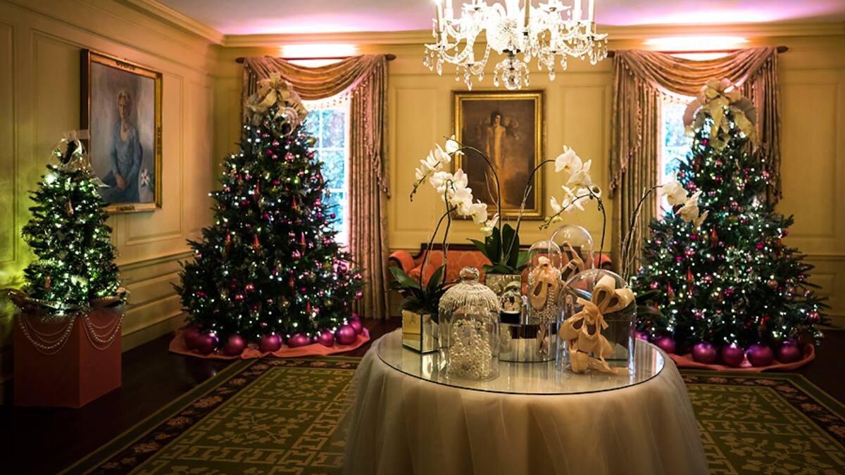 Multitud de regalos, 56 casas de jengibre de juguete y las réplicas gigantes de los perros de la familia Obama protagonizan la decoración navideña de este año de la Casa Blanca, presentada por la primera dama, Michelle