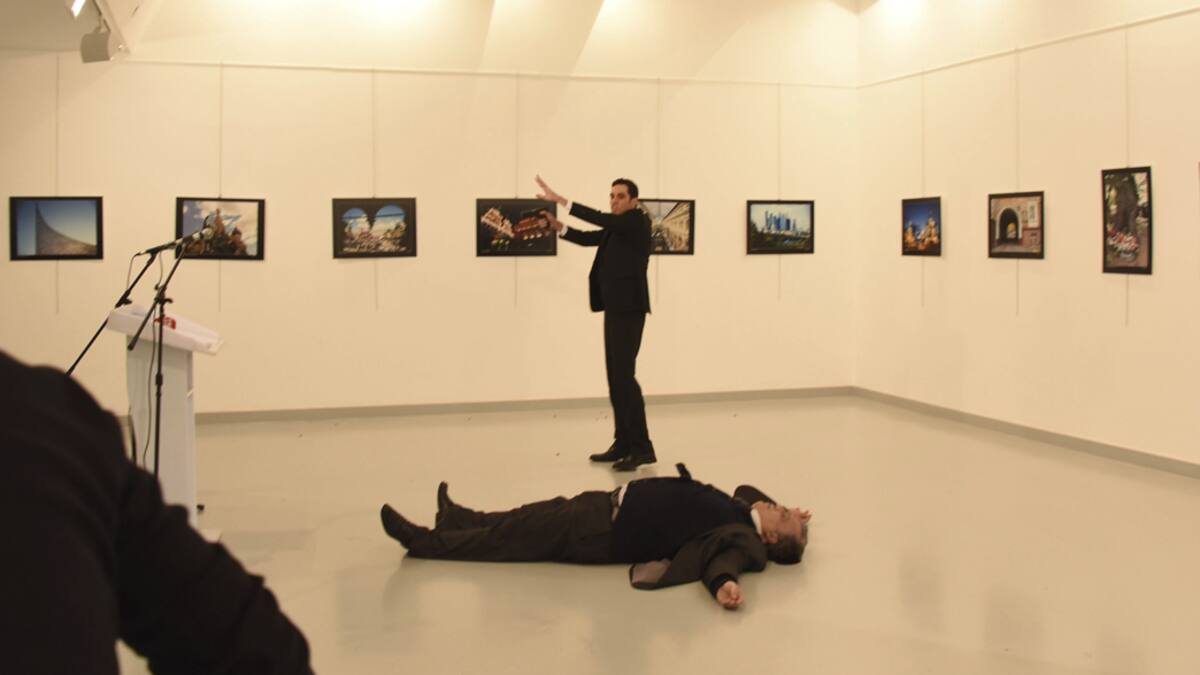 Karlov, que iba sin escolta, fue atacado a bocajarro por un hombre cuando pronunciaba unas palabras en la inauguración de una exposición de fotografía titulada Rusia vista por los turcos. en pleno centro de la capital turca.