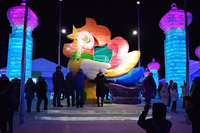 En la margen norte del Songhua se sitúa la Isla del Sol, que alberga uno de los principales recintos del Festival, dedicado a esculturas de nieve de diversos temas. Entre numerosas referencias al Año del Gallo -que arranca el próximo 28 de enero-, destacan las representaciones religiosas y los temas invernales.