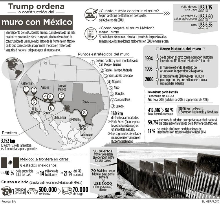 10. Dio la orden para iniciar en cuestión de 'meses' la construcción de un muro en la frontera con México.