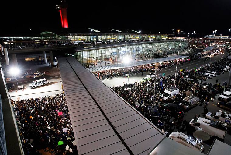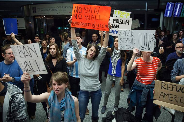 En el aeropuerto de San Francisco también se concentraron las manifestaciones.