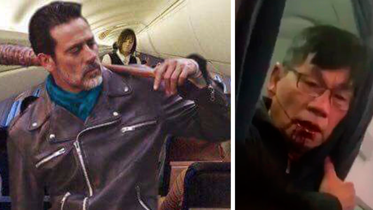 En unos videos publicados en Internet por otros pasajeros presentes en el avión se ve a unos policías sacando por la fuerza a un hombre de su asiento y arrastrándolo hasta la salida. El viajero expulsado tenía el rostro ensangrentado y las gafas torcidas.