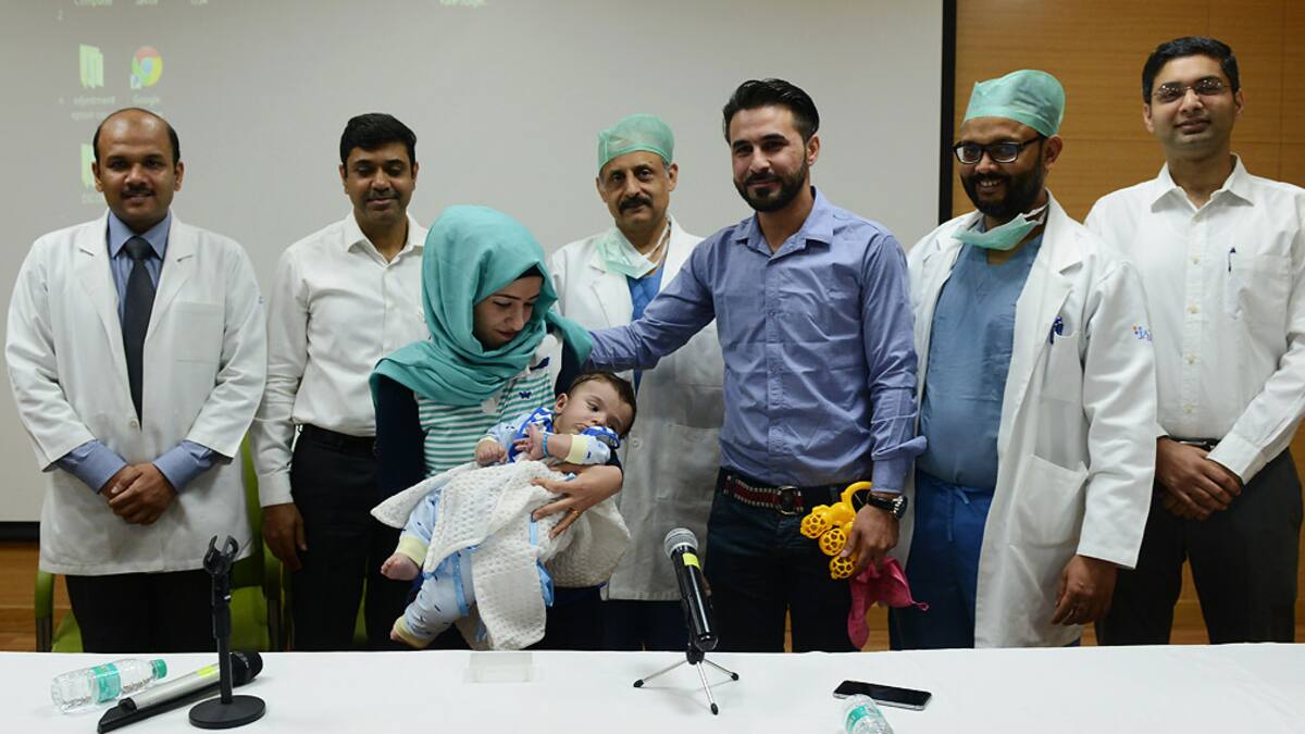El padre del bebé, Sarwed Ahmed Nadar, llevó a su hijo a India donde un equipo médico lo sometió a tres operaciones sucesivas, cerca de Nueva Delhi.