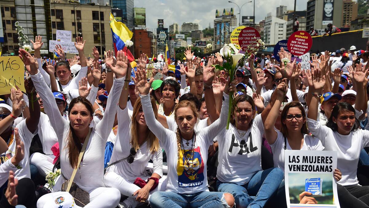 Encabezadas por diputadas y otras dirigentes de la oposición, cientos de mujeres marchaban hasta el Ministerio de Interior y Justicia, en el centro de Caracas, para rechazar que los cuerpos de seguridad dispersen las protestas contra el gobierno con gases lacrimógenos, perdigones y chorros de agua a presión.