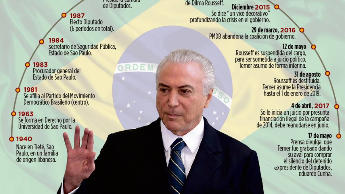 Temer, que saltó a la Presidencia hace un año tras apoyar la destitución de Dilma Rousseff por supuestas maniobras fiscales, está acorralado y afronta nueve peticiones de juicio destituyente.