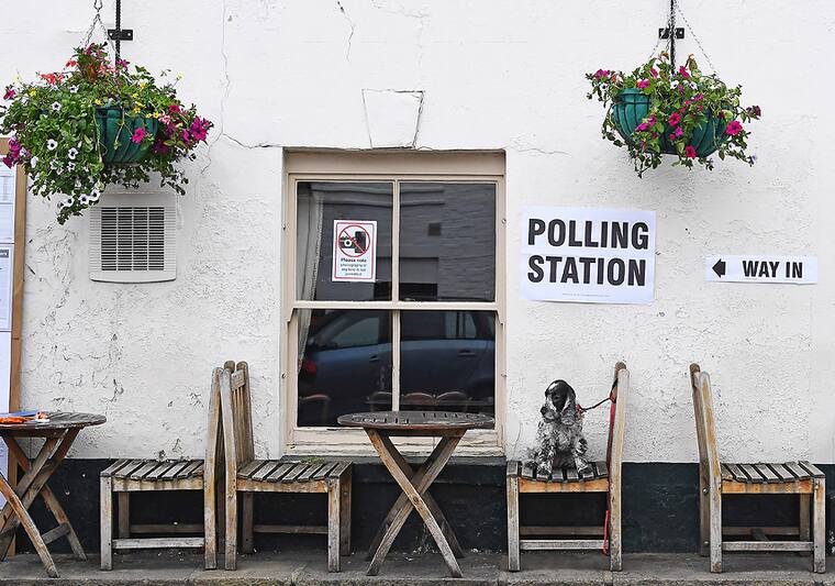 Las fotos de perros delante de colegios electorales se convirtieron de nuevo en tendencia en las redes sociales este jueves, en que se celebran elecciones legislativas en el Reino Unido