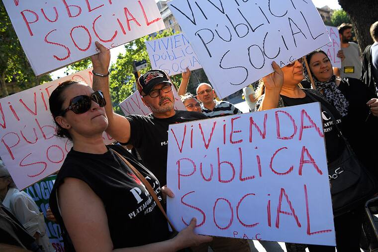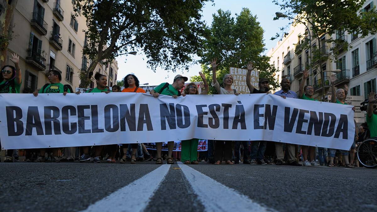Más de 2.000 personas se manifestaron este sábado en Barcelona contra la especulación urbanística y la proliferación de pisos turísticos en el centro de la ciudad, constató la AFP.