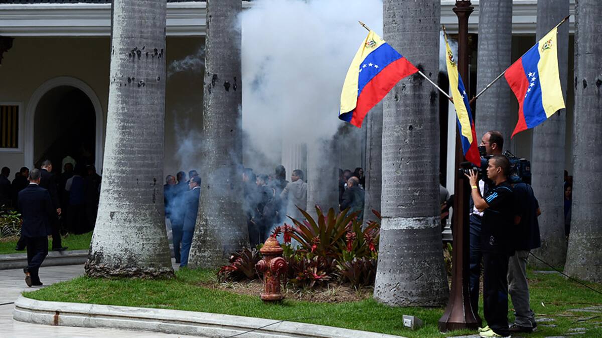 Los partidarios de Maduros se encontraban frente al edificio legislativo en un 'plantón' de seis horas en rechazo a la oposición, pero durante un receso de la sesión solemne forzaron el portón y lograron llegar hasta los pasillos y entradas a los salones.
