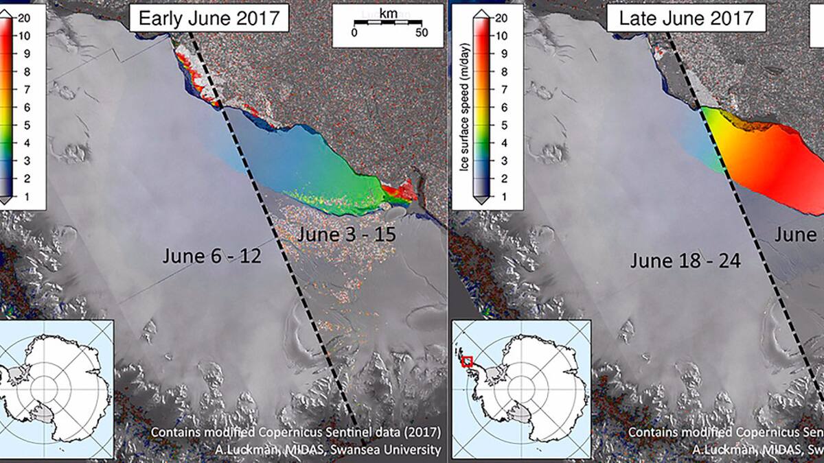 La grieta, de unos 200 kilómetros de extensión, y que se mantuvo relativamente estable durante algún tiempo, aceleró de manera significativa su quiebre en los últimos meses y ha terminado por colapsar de manera sorprendentemente rápida.