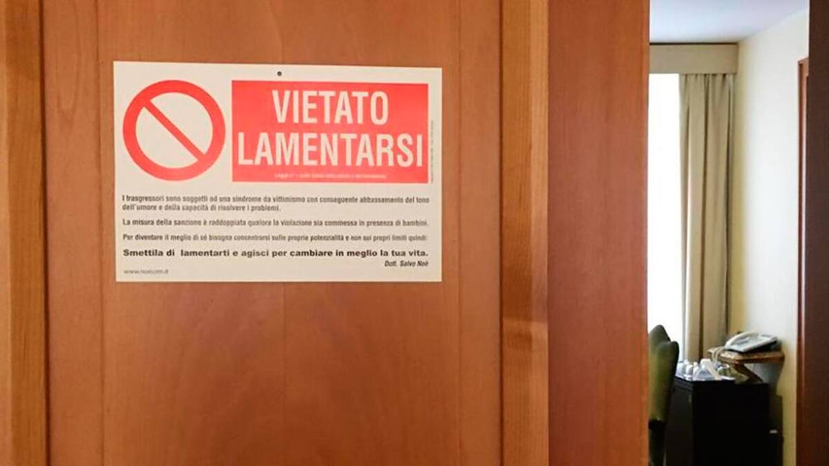 Un divertido aviso apareció en la puerta de entrada a la habitación de papa Francisco en la casa Santa Marta en el Vaticano que dice 'Prohibido quejarse', reveló este viernes el vaticanista del diario La Stampa.