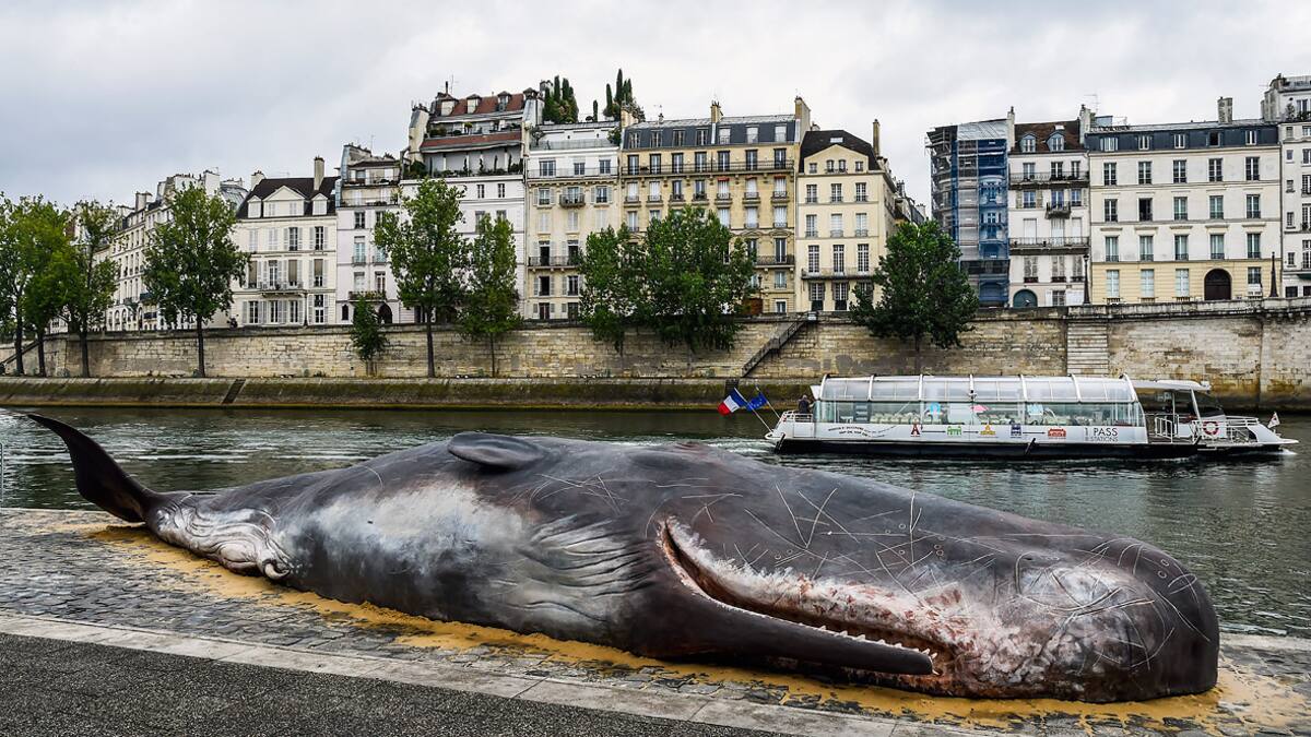 La imagen con la que despertaron los parisinos –la del supuesto mamífero tendido a pocos metros de la catedral de Notre Dame– se trata de una obra hiperrealista hecha por el colectivo belga de artistas Captain Boomer la cual se define como “una metáfora gigantesca de la ruptura de nuestro sistema ecológico”.