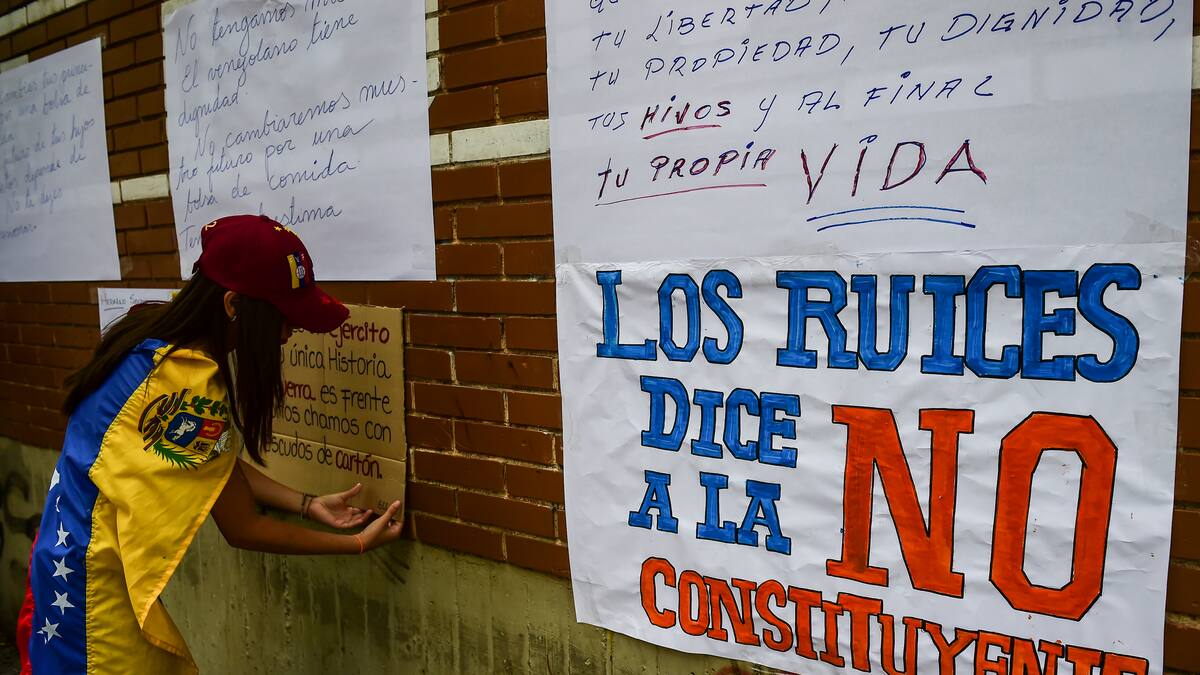 'No queremos ser Cuba', se lee en uno de los carteles que grupos de opositores venezolanos pegaron en las fachadas de algunos recintos electorales, en una marcha contrarreloj para frenar la elección, el domingo, de la Asamblea Constituyente convocada por el presidente Nicolás Maduro.