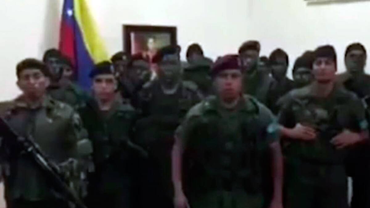 Caguaripano aparece junto con otros 15 vestidos de camuflaje, algunos armados. 'Exigimos la conformación inmediata de un gobierno de transición y elecciones generales libres', dijo supuestamente desde la 41° Brigada Blindada de Valencia.