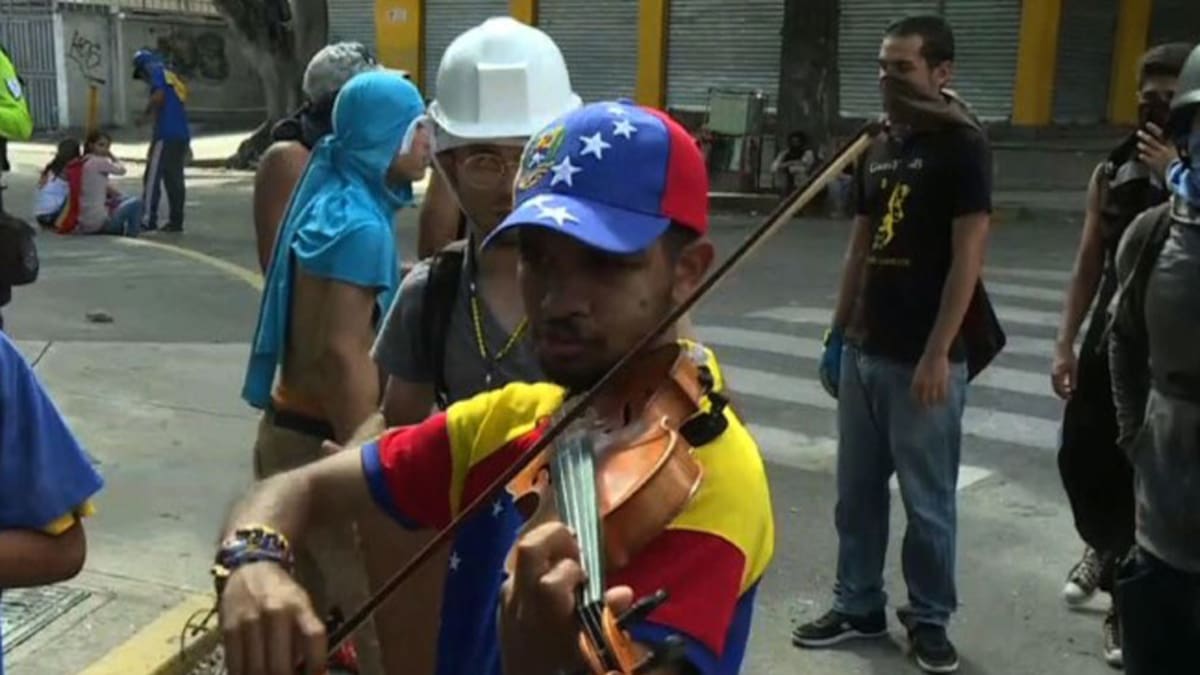 Arteaga se convirtió en un ícono de las manifestaciones que exigen la salida de Maduro del poder, asegurando que con su violín quiere dar 'un mensaje de paz' entre violentos disturbios que dejaron unos 125 muertos desde el 1 de abril.
