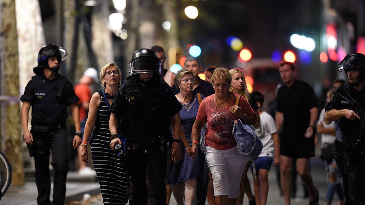 Mientras la zona de las Ramblas en la segunda ciudad española se mantenía sellada por un cordón de seguridad, la policía pedía a la población evitar los desplazamientos. Numerosos vehículos de emergencia y policía se encontraban en el lugar, constató un periodista de la AFP.