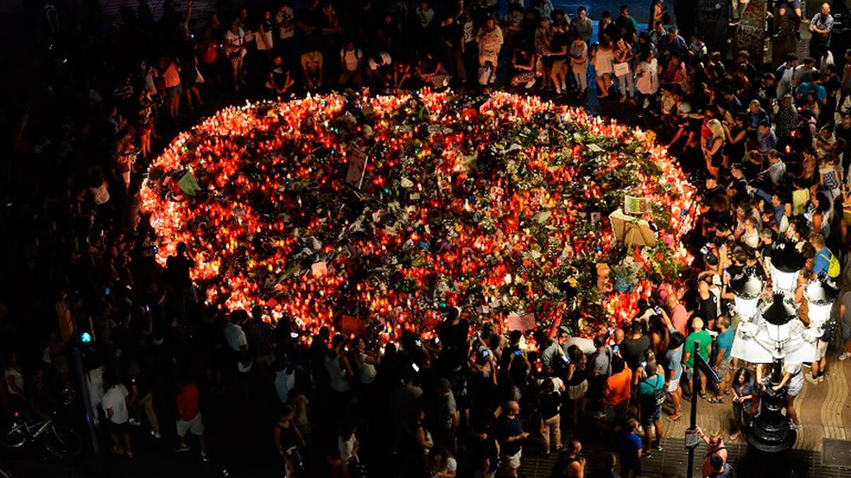 A lo largo de los 500 metros recorridos por la furgoneta que el jueves mató a 13 personas, no dejaron de aparecer 'altares' improvisados en memoria de las víctimas.