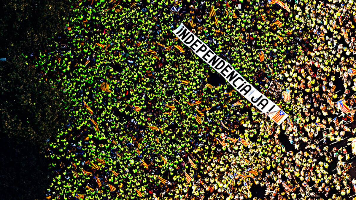 'Adiós España': miles de independentistas catalanes se congregaron ayer en Barcelona en una exhibición de fuerza a tres semanas del referéndum de autodeterminación del 1 de octubre que las instituciones españolas quieren impedir.