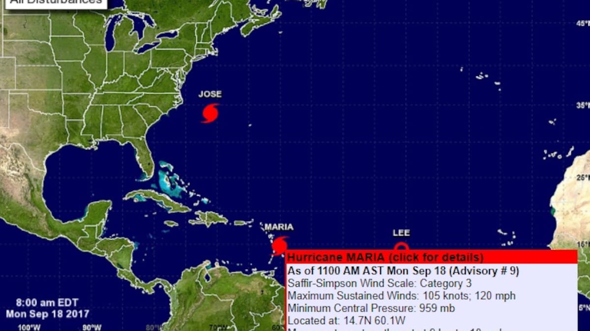 'El centro de María pasará sobre las Antillas Menores entre la tarde y la noche de hoy (lunes), sobre el extremo noreste del Mar Caribe el martes y se acercará a Puerto Rico y las Islas Vírgenes el miércoles', escribió el NHC, con sede en Miami.