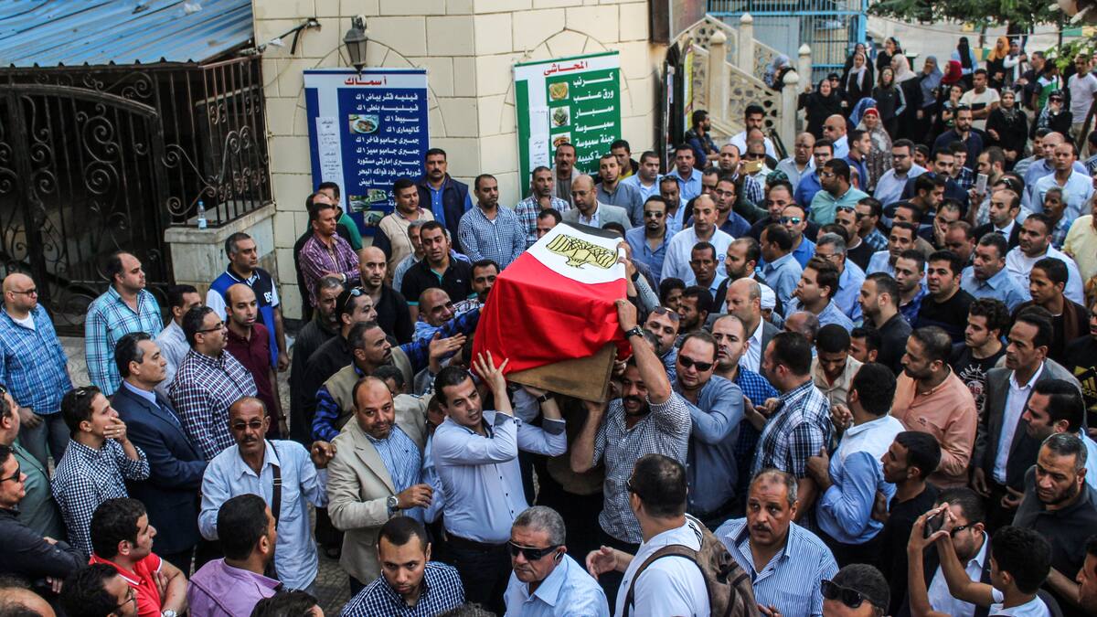 Los funerales de los policías se celebraron en la noche del sábado, con un oficio religioso en la mezquita de la policía en El Cairo.