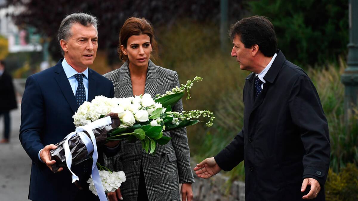 Macri y su esposa, Juliana Awada, depositaron un ramo de flores blancas sobre el murito de piedras de la ciclovía, al igual que el alcalde de Nueva York, Bill De Blasio, y su esposa.
