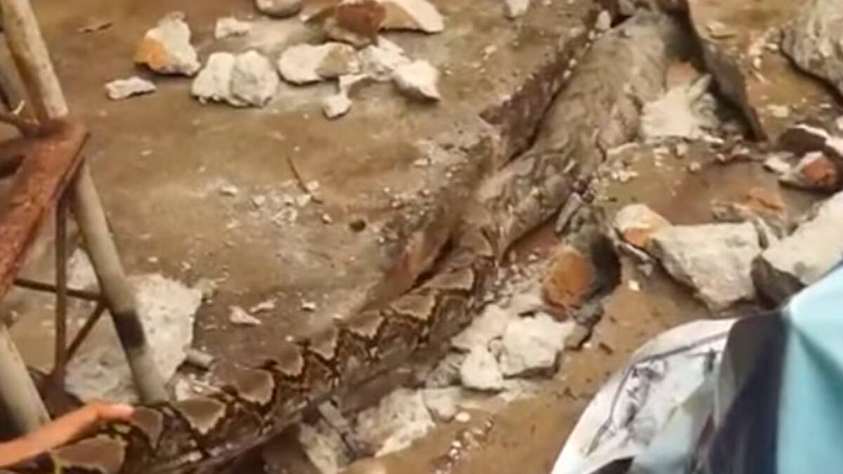 Con la ayuda de la policía local procedieron a romper el concreto del patio hasta poder sacar el animal. La primera sorpresa fue que se trataba de una pitón de Birmania, una de las especies de serpiente más grandes del mundo.