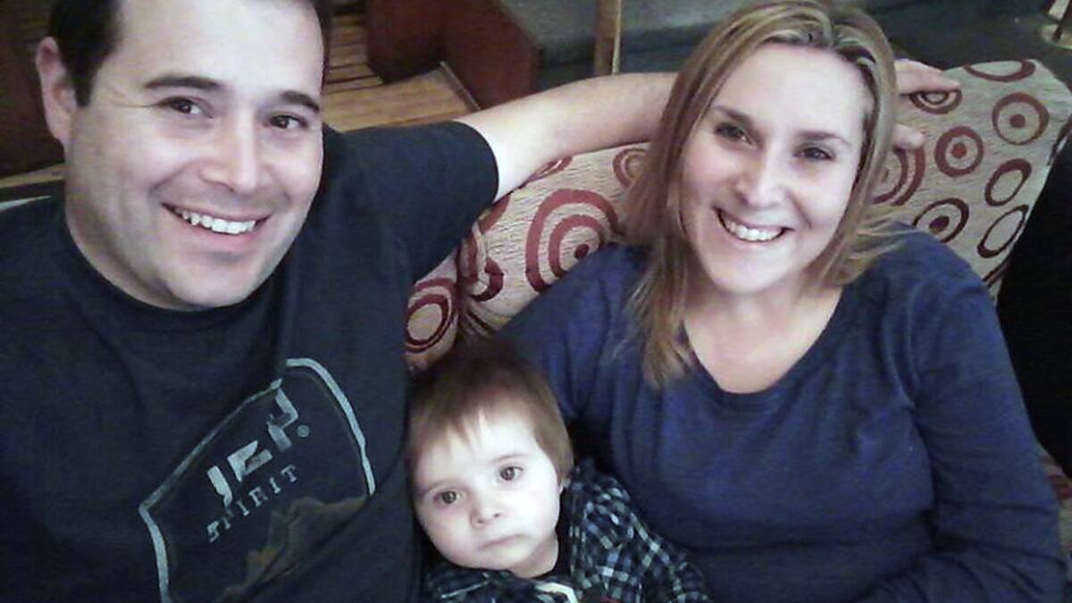 Fotos de la pareja sonriente y del cabo principal Santilli junto al niño, ilustran el portal de 'Jessica Jeko Gopar'.