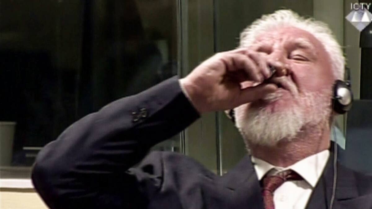 De pie, frente a sus jueces, Slobodan Praljak oyó cómo el tribunal confirmaba su condena a 20 años de cárcel y con voz firme dijo: 'Slobodan Praljak no es un criminal de guerra, rechazo su veredicto', sacó un frasco y bebió su contenido, provocando estupor en la sala de audiencias.