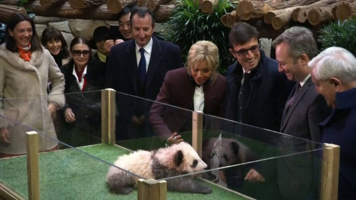 La primera dama de Francia, Brigitte Macron, participó este lunes en la ceremonia oficial en la que se bautizó al primer panda nacido en Francia, fruto de una pareja de osos prestada por Pekín como un gesto de amistad diplomática.