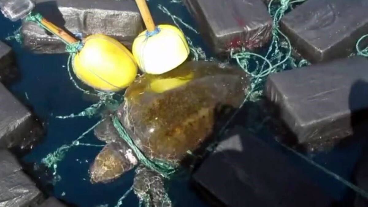 El animal fue encontrado en aguas internacionales por un barco de la Guardia Costera de EEUU, cuando estaba atrapada en una red que contenía 26 paquetes de cocaína, cuyo valor en el mercado negro alcanzaría los 53 millones de dólares.