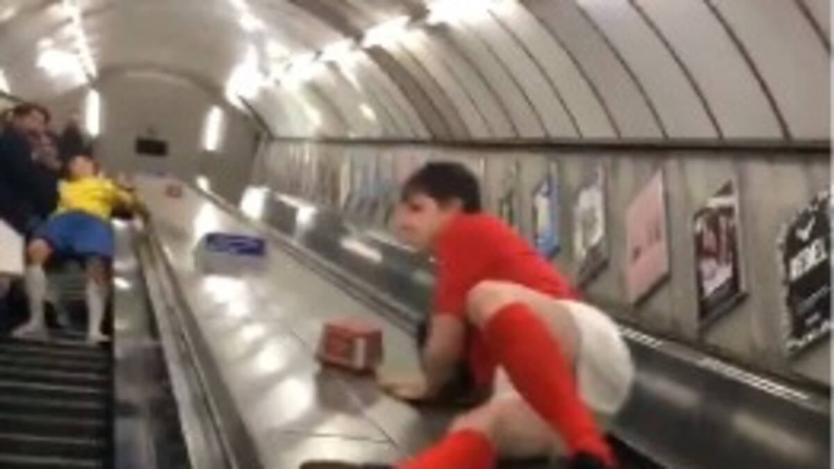 La idea de impresionar a sus amigos, le salió costosa a un joven que decidió usar las escaleras eléctricas del metro de Londres como tobogán. En el vídeo, difundido en las redes sociales, el muchacho no tuvo en cuenta los obstáculos que estaban en las escaleras para lanzarse, se golpea varias veces y finalmente cae tras un certero golpe.