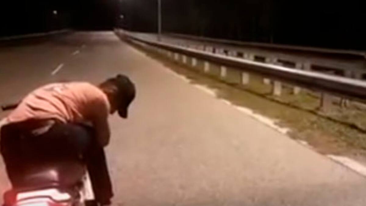 Se trata de una grabación publicada en Facebook filmada en una vía en Malasia que muestra como un joven se encuentra detenido revisando su motocicleta, mientras que en sentido contrario aparece otra moto que supuestamente se estaría desplazando sin piloto.