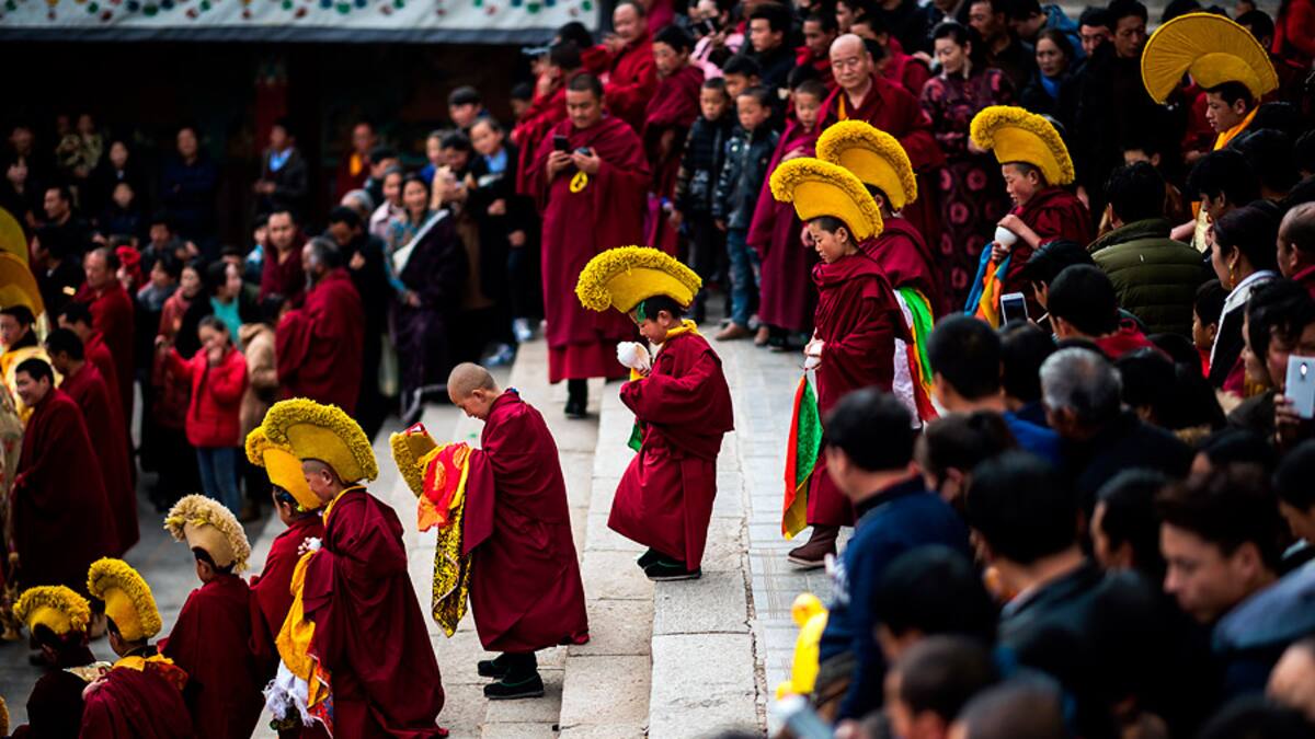 Una extensa procesión, con un buda gigante de colores tornasolados y cadáveres de corderos, encantaron a fieles y turistas en el norte de China, donde los tibetanos celebraron con fervor el fin de las fiestas por el Año Nuevo Lunar.