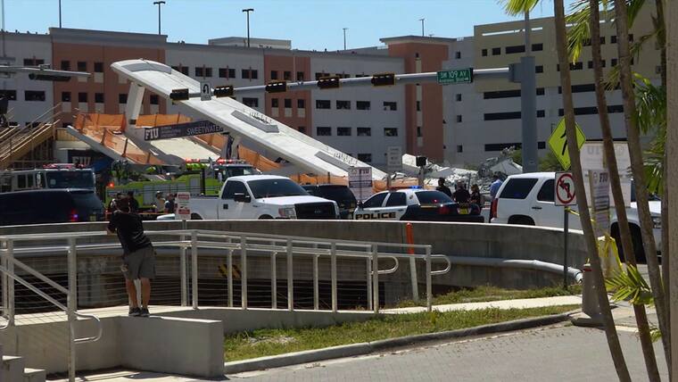 La construcción del paso peatonal, de 970 toneladas y 88 metros de largo, que conectaba la Florida International University (FIU) con la ciudad periférica de Sweetwater, en el oeste de Miami, había culminado la semana pasada e iba a ser inaugurado a principios del año próximo.