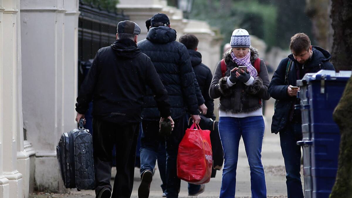 Los diplomáticos partieron en varias furgonetas con sus familias el día en que se cumplía el plazo de una semana dado por el gobierno británico para abandonar el país, a lo que Moscú respondió dictando también la expulsión del mismo número de representantes británicos.