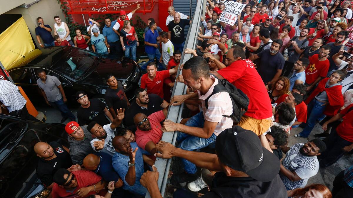 Lula y sus acompañantes habían llegado al estacionamiento por una puerta trasera y pretendían abandonar el lugar discretamente por una puerta lateral, pero rápidamente los militantes rodearon el carro.