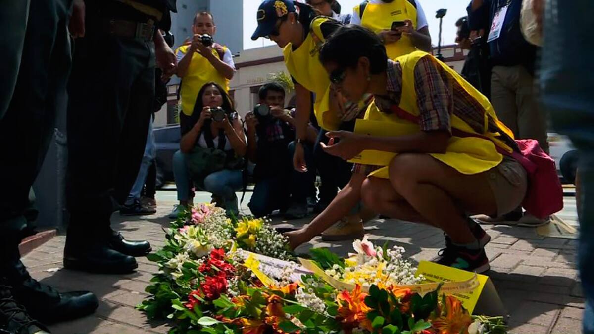 Activistas convocados por Amnistía Internacional depositaron flores el jueves frente a la embajada de Venezuela en Lima durante una protesta por las víctimas de la crisis socioeconómica en ese país en la víspera de la Cumbre de las Américas.
