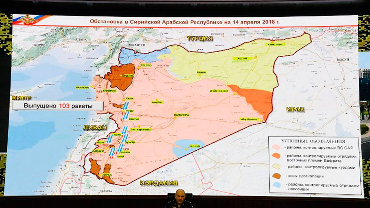 El ejército ruso afirmó este sábado que la defensa antiaérea siria interceptó 71 de los 103 misiles de crucero lanzados por Estados Unidos y sus aliados contra instalaciones del régimen sirio.