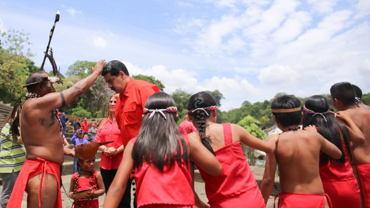 'Gracias por darme toda esta fuerza', dijo Maduro tras la ceremonia, realizada a su llegada a Bolívar, hogar de la etnia pemón.