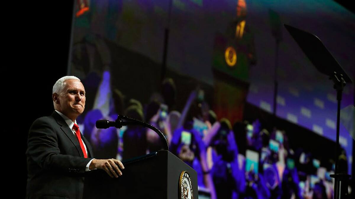 En un discurso de aproximadamente media hora -durante el cual la silla de la delegación venezolana permaneció vacía-, el vicepresidente Pence dijo que 'las llamadas elecciones previstas para el 20 de mayo no son más que un fraude y una estafa'.