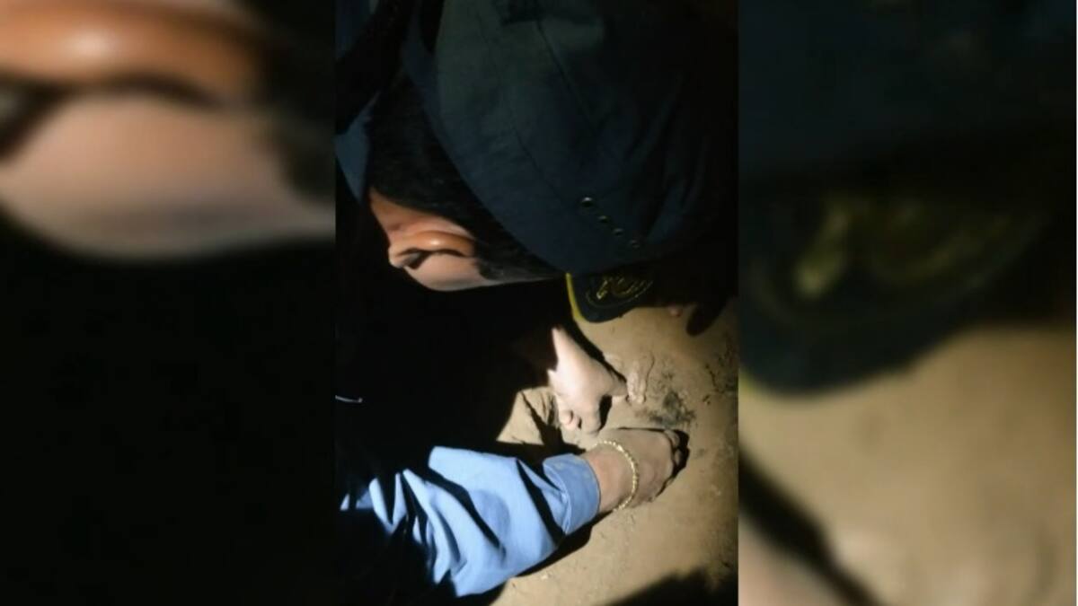 La policía divulgó un video en el que se ve a los efectivos cavando, durante la noche, un pequeño agujero del que sacan a la bebé aún con su cordón umbilical.