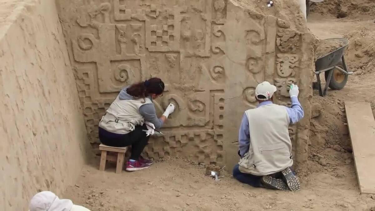 Chan Chan, la principal ciudadela prehispánica de barro en América, cada cierto tiempo sorprende al mundo con nuevos hallazgos, como ahora con un corredor con murales en alto relieve en un milenario palacio.